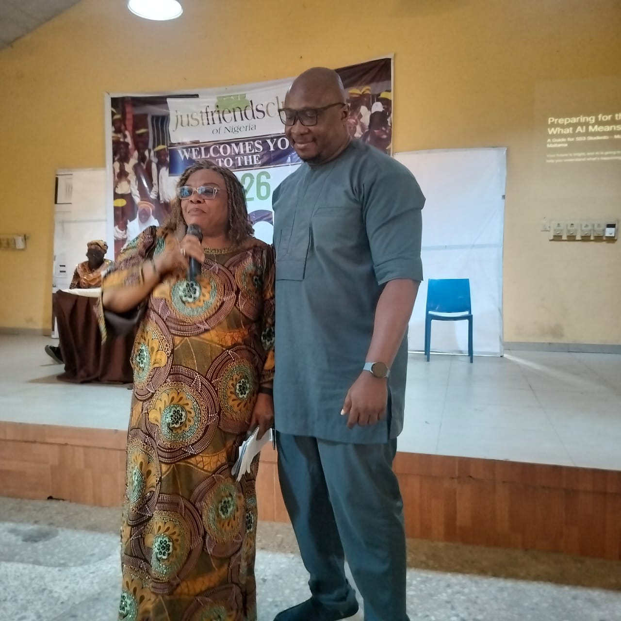 - On November 25, 2023, as part of its annual end-of-year activities,JFCN visited Facado Orphanage Home, Wumba District, Abuja. Here, JFCN President, Fred Ohwahwa, (left) presents gifts to the proprietor of the orphana