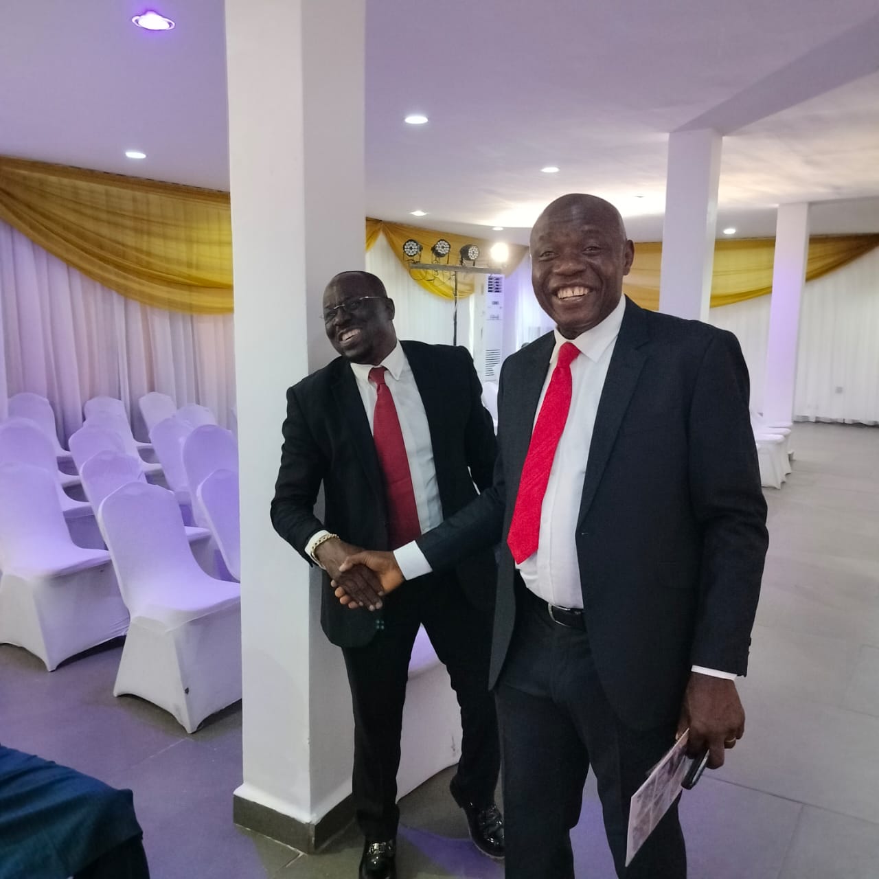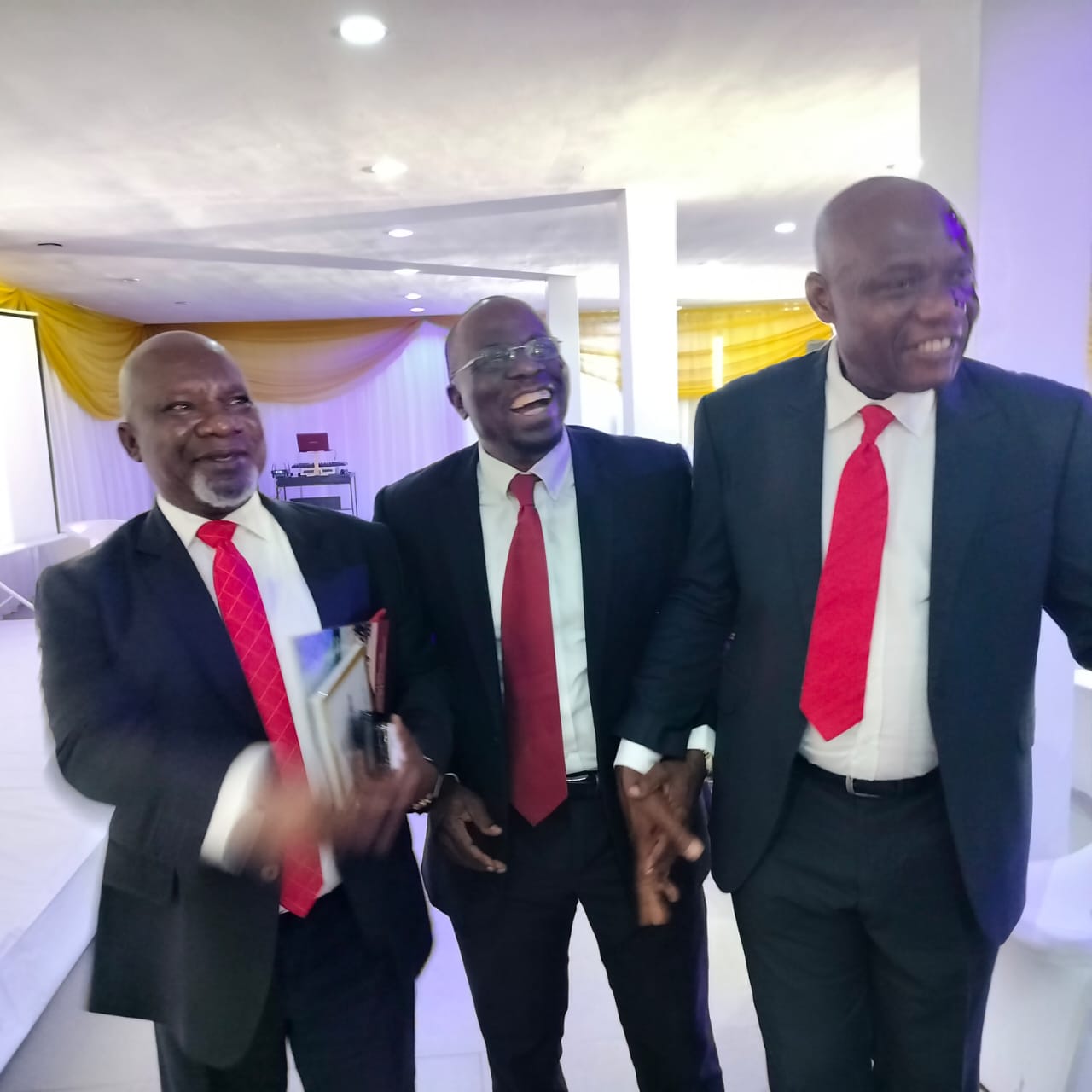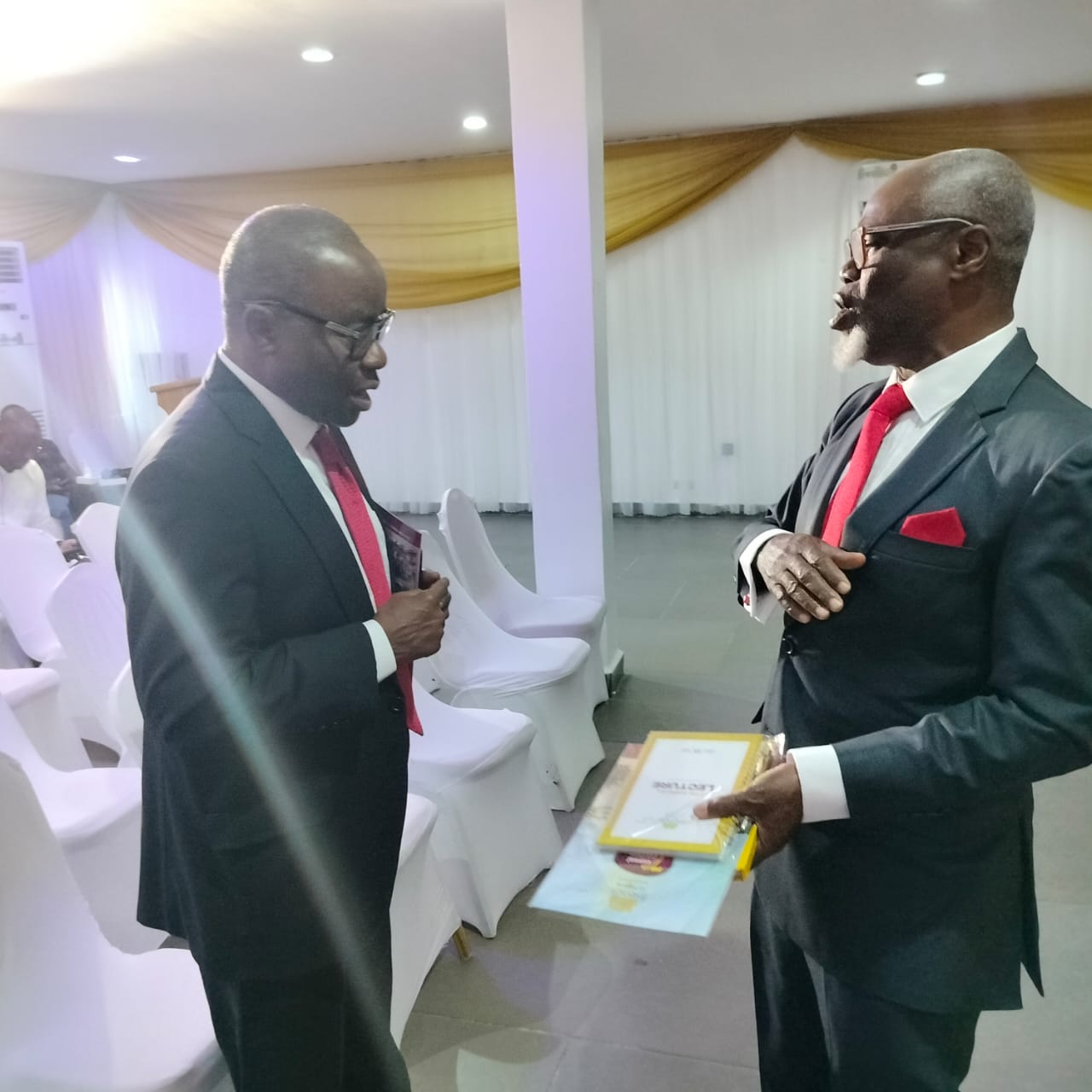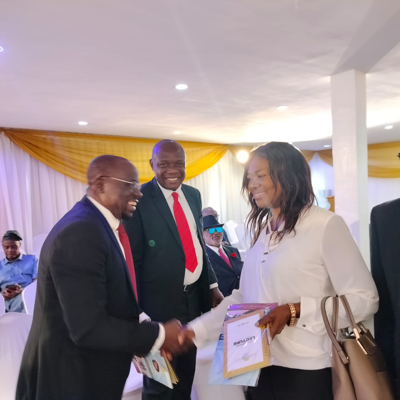 - (L-R) Dr. Oyesola Oyebanji and Ozone Agbakuru being inducted as members by our legal adviser, Kennedy Uwagboe.